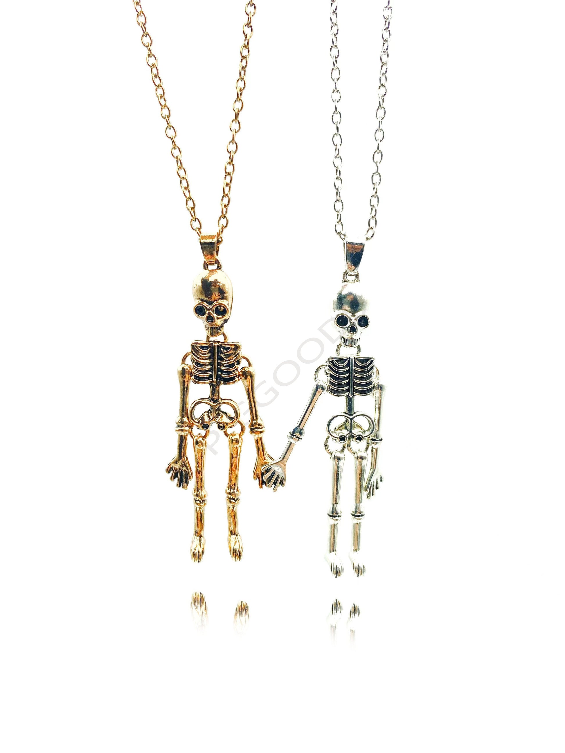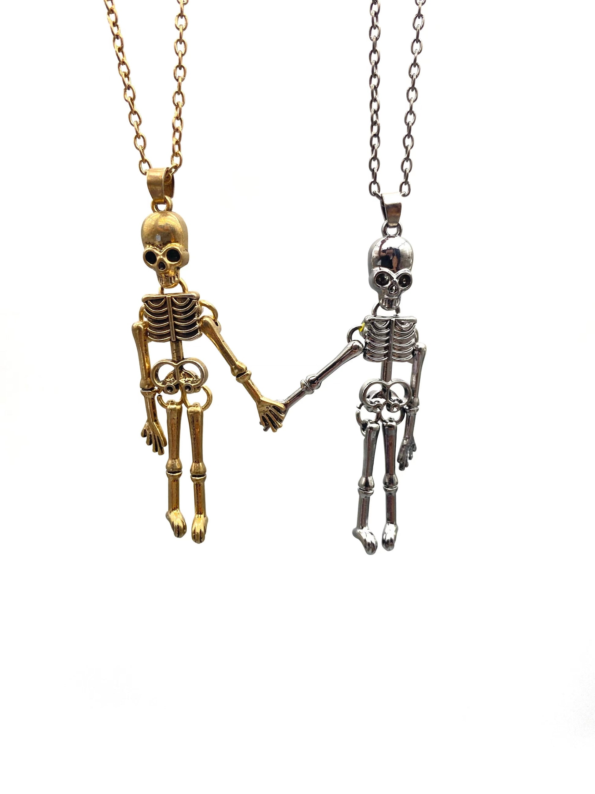 Hold Hands Till Dead Halloween Skeleton Ghost Skull Magnetic Necklace